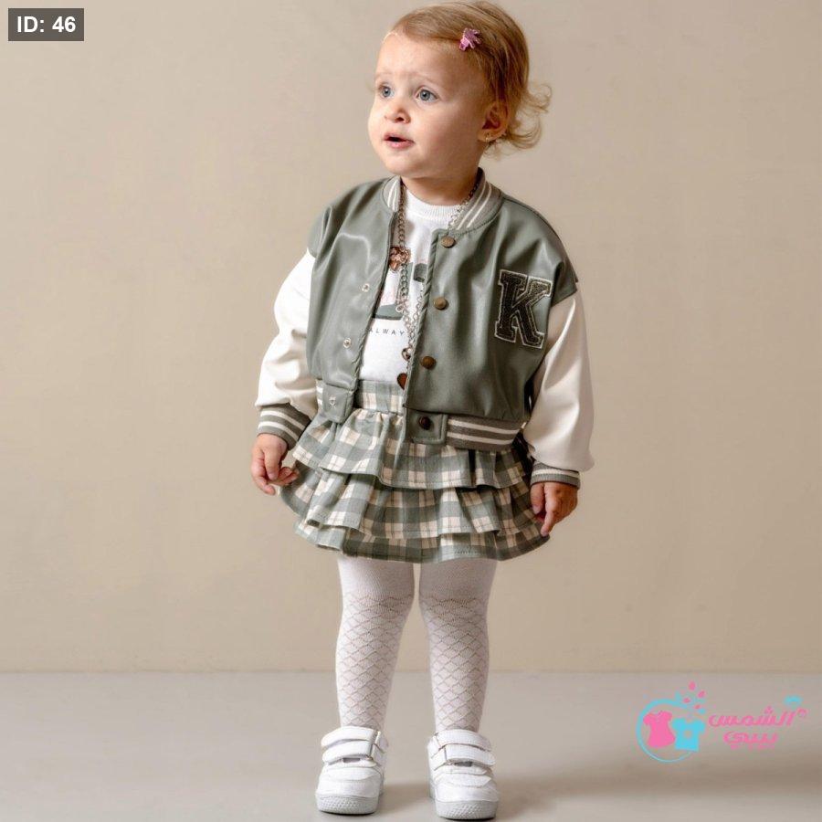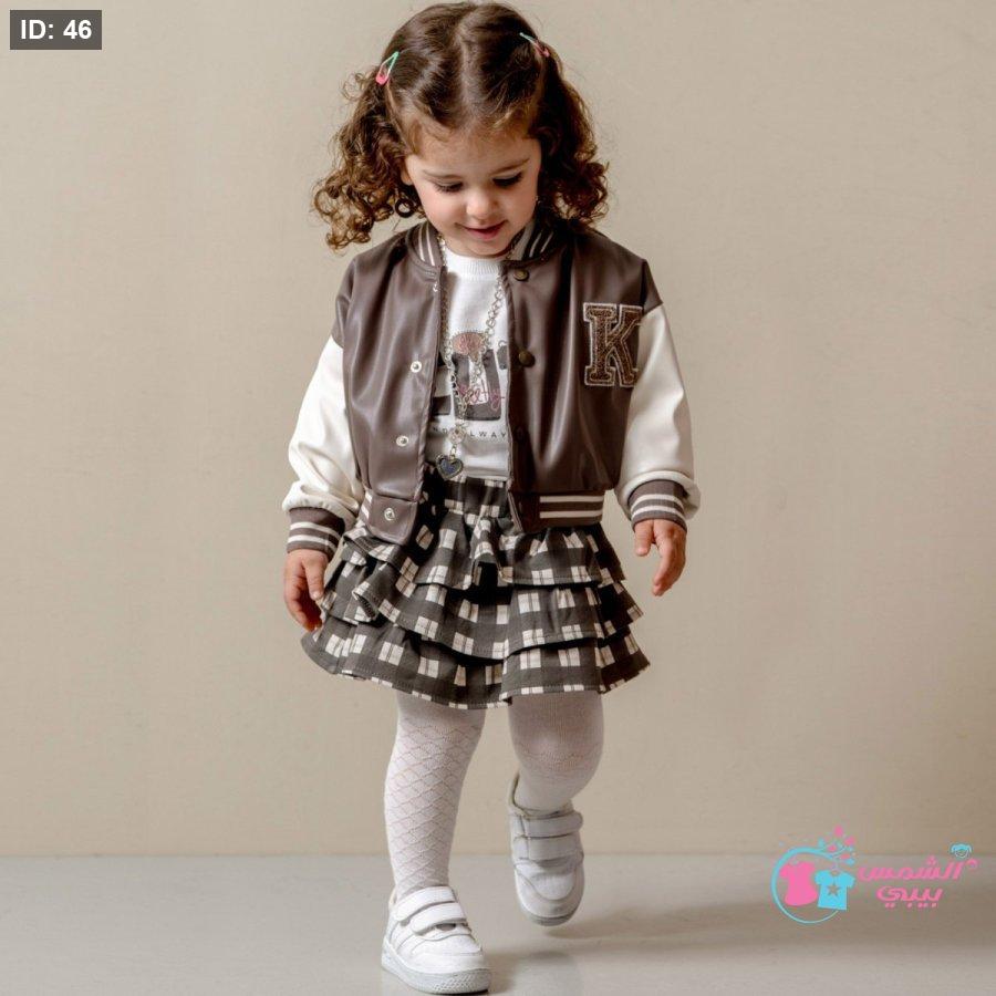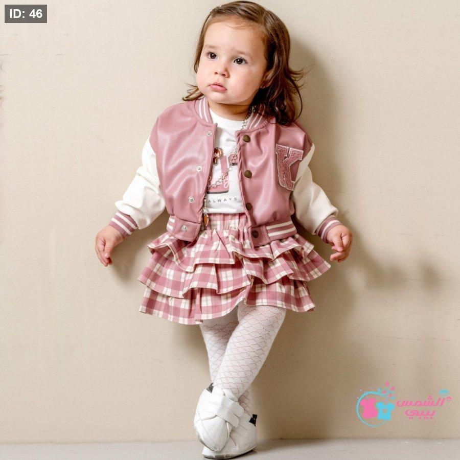 طقم بناتي تنورة مع جكيت جلد مبطن 4 قطع