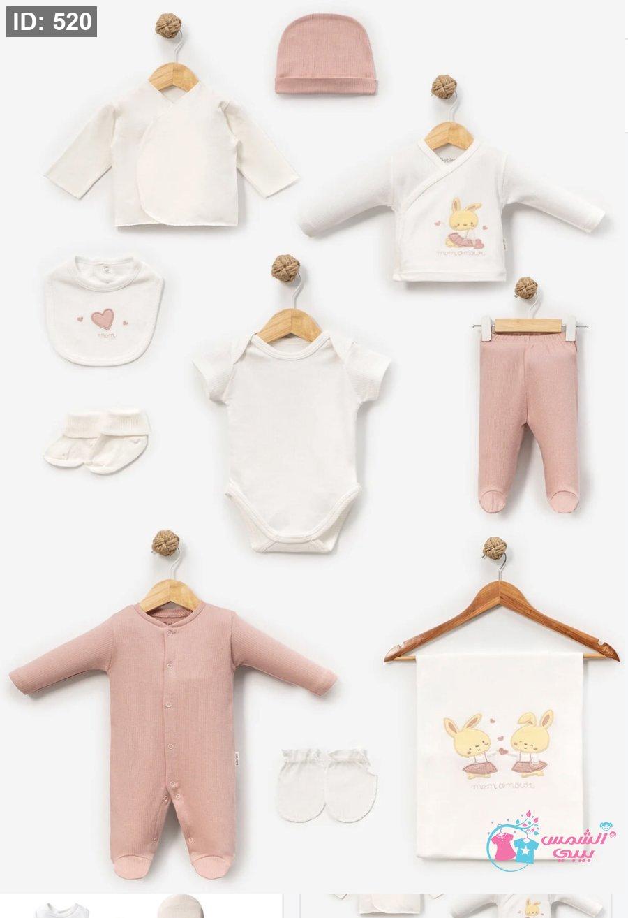 10 قطع:افرهول/بجامة بلوزة وبنطلون/تبان داخلي/حرام/جرابات/كفوف/مريولة/طاقية/قطعة داخليه